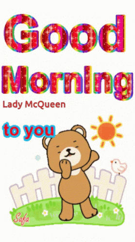 Descrierea conținutului: lady mcqueen says good morning to you with a brown teddy bear