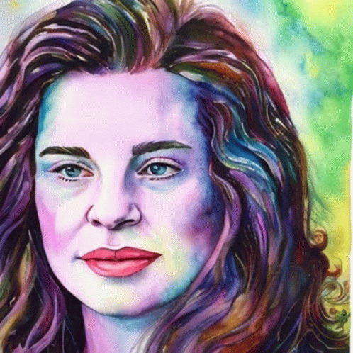 Descrierea conținutului: a colorful painting of a woman 's face with blue eyes