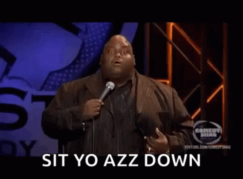 Descrierea conținutului: a man is giving a speech in front of a microphone and says sit yo azz down .