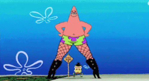 Descrierea conținutului: patrick star from spongebob wearing fishnet stockings