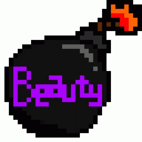 Descrierea conținutului: it looks like a pixel art of a bomb with the word beauty on it .