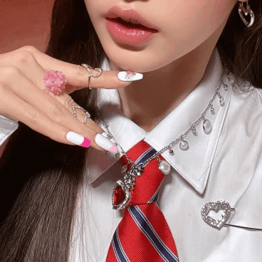 Descrierea conținutului: a woman wearing a red tie and a necklace with a heart on it