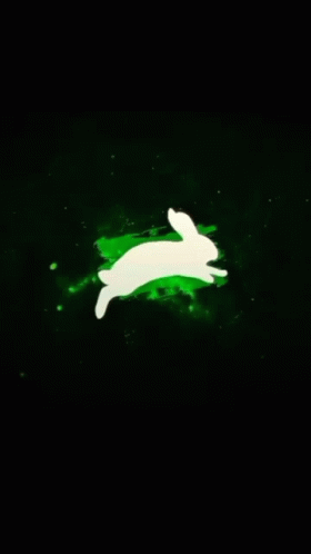 Descrierea conținutului: a white rabbit is jumping over a green leaf on a green background .