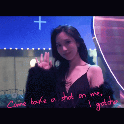 Descrierea conținutului: a woman in a black dress with the words come take a shot on me i gotcha