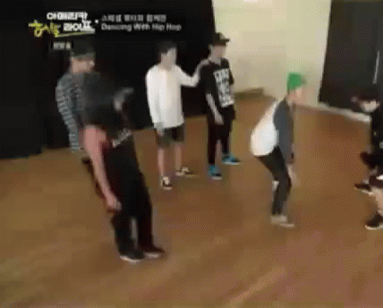 Descrierea conținutului: a group of young men are dancing in a room with a sign that says dancing with hip hop .