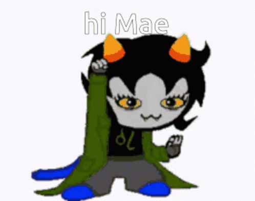Descrierea conținutului: a cartoon of a girl with horns and the words hi mae on the bottom