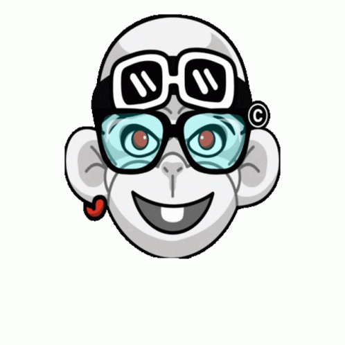 Descrierea conținutului: a cartoon monkey wearing glasses and goggles with a copyright symbol