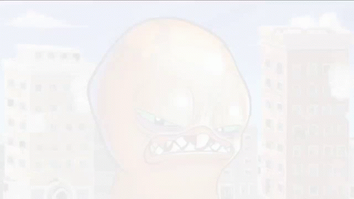 Descrierea conținutului: a cartoon drawing of a giant monster with a very angry look on his face