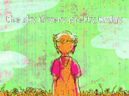 Descrierea conținutului: a drawing of a person with the words the sky is very pretty today on it