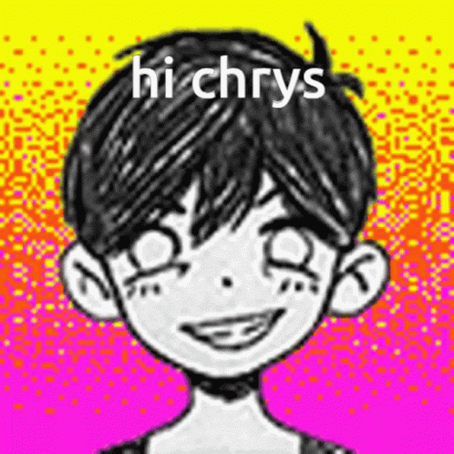 Descrierea conținutului: a black and white drawing of a boy with a rainbow background and the words `` hi chrys '' .