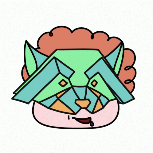 Descrierea conținutului: a drawing of a cat with a green face and a red head