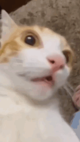 Descrierea conținutului: a close up of a cat with its mouth open and a surprised look on its face .