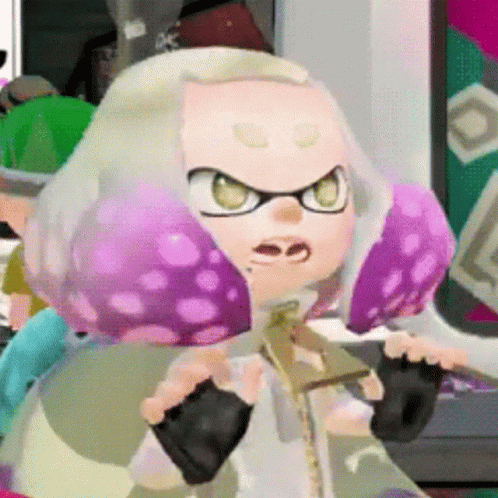 Descrierea conținutului: a close up of a cartoon character with a purple and white outfit