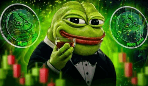 Descrierea conținutului: a green frog in a tuxedo is holding a glass of red liquid