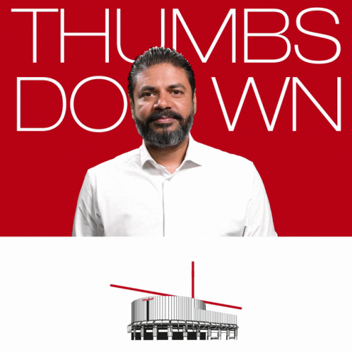 Descrierea conținutului: an advertisement for steinhoff shows a man giving a thumbs down sign