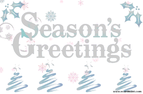 Descrierea conținutului: a season 's greetings card with trees and snowflakes