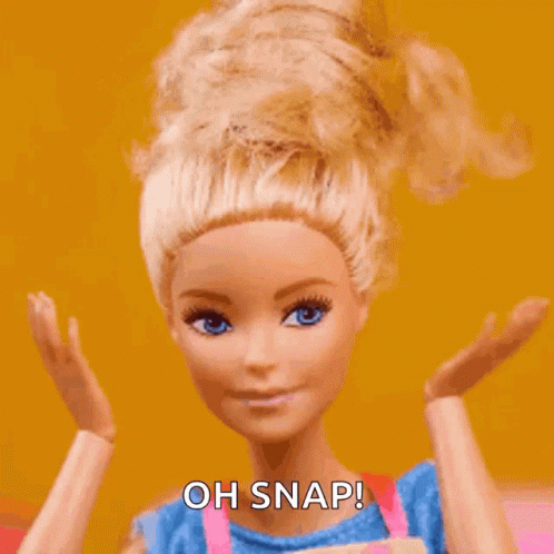 Descrierea conținutului: a barbie doll is making a funny face and says oh snap !
