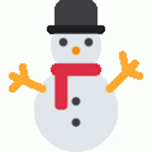 Descrierea conținutului: a pixel art illustration of a snowman wearing a black hat and scarf .