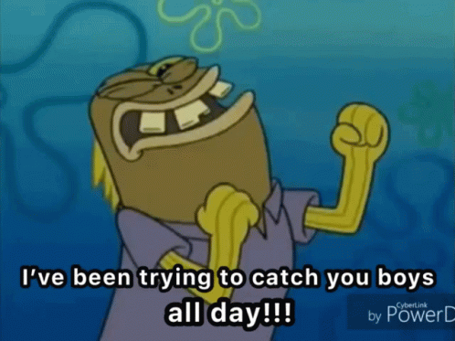 Descrierea conținutului: a cartoon character is saying i 've been trying to catch you boys all day
