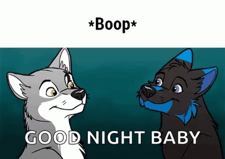 Опис на содржините: a cartoon of two wolves looking at each other with the words " good night baby " below them