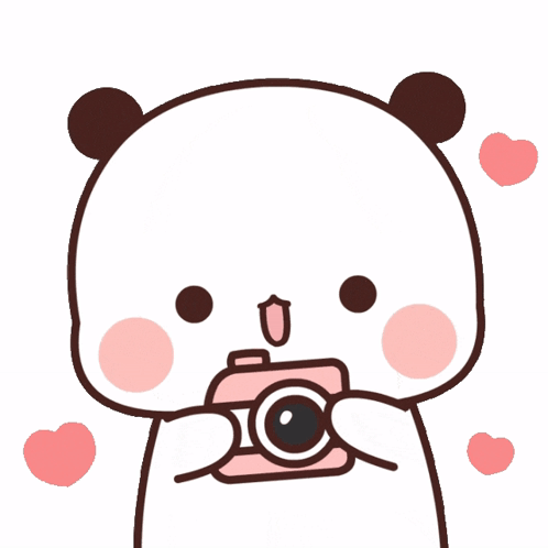 Опис на содржините: a cartoon panda bear is holding a pink camera in its paws
