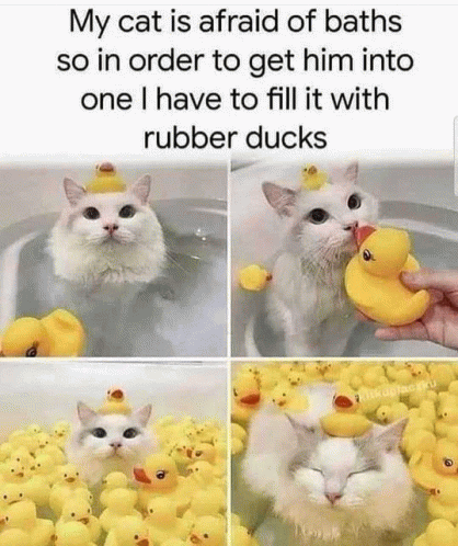 Опис на содржините: a cat is taking a bath with rubber ducks .