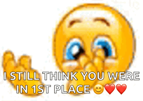 Опис на содржините: a yellow smiley face with blue eyes and the words i still think you were in 1st place