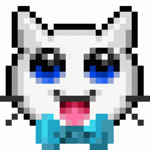 Опис на содржините: a pixel art drawing of a cat wearing a bow tie .