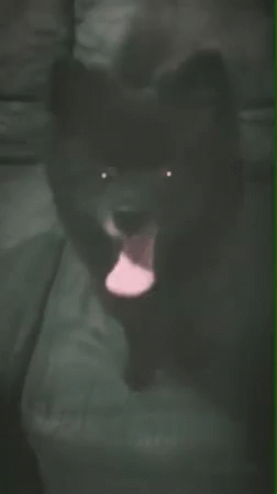 Опис на содржините: a black dog is laying on a couch with its tongue out