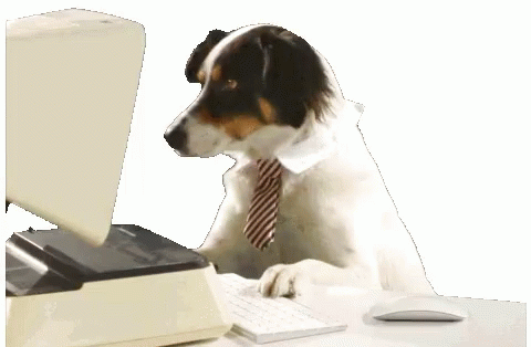 Опис на содржините: a dog wearing a tie is typing on a computer keyboard