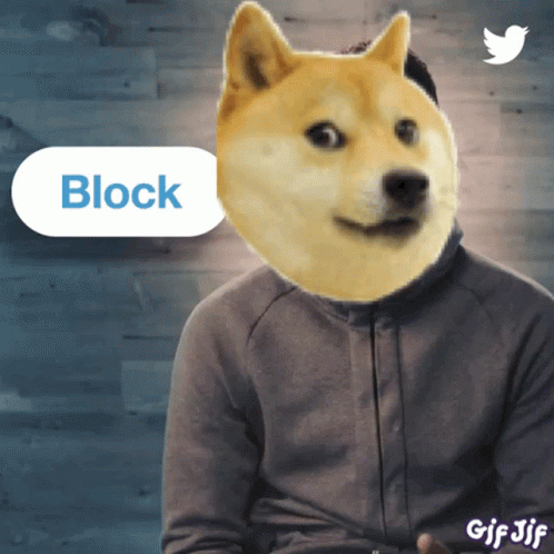 Опис на содржините: a gif of a doge with the word block in a speech bubble