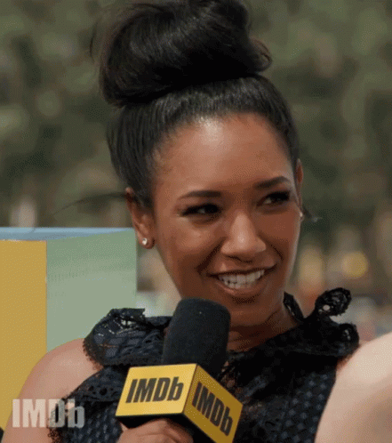 Опис на содржините: a woman is smiling and holding a microphone that says imdb