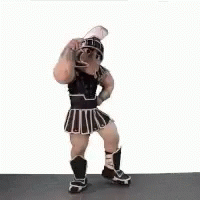 Опис на содржините: a statue of a muscular man in a spartan costume is dancing .