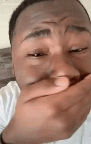 Опис на содржините: a man is covering his mouth with his hand while laughing .