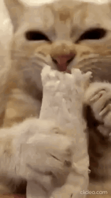 Опис на содржините: a close up of a cat eating a piece of paper .