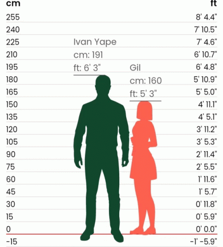 Опис на содржините: a man and a woman are standing next to each other and their heights are shown in centimeters