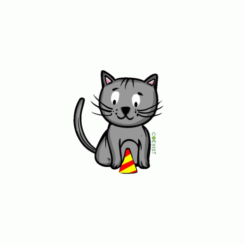 Опис на содржините: a cartoon drawing of a cat with a party hat and the word coexist below it