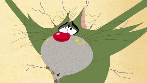 Опис на содржините: a cartoon cat with a pink tongue sticking out and a red nose .