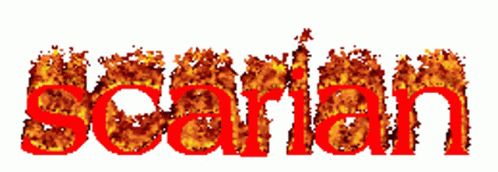 Опис на содржините: scarian is written in red with flames coming out of the letters