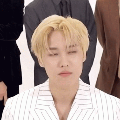 ഉള്ളടക്കത്തിന്റെ വിവരണം: a man with blonde hair is wearing a white striped jacket