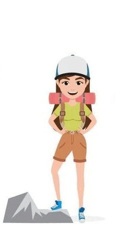 ഉള്ളടക്കത്തിന്റെ വിവരണം: a woman with a backpack is standing next to a rock .
