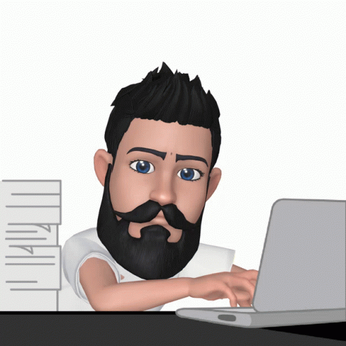 ഉള്ളടക്കത്തിന്റെ വിവരണം: a cartoon of a man with a beard and mustache typing on a laptop