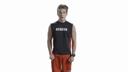 ഉള്ളടക്കത്തിന്റെ വിവരണം: a man wearing a rescue shirt and shorts looks surprised