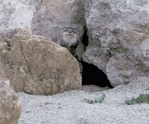 ഉള്ളടക്കത്തിന്റെ വിവരണം: a cat is looking out of a rocky cave