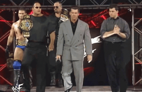 - ഉള്ളടക്കത്തിന്റെ വിവരണം: a group of wrestlers are walking on a stage with one holding a world heavyweight wrestling championship belt