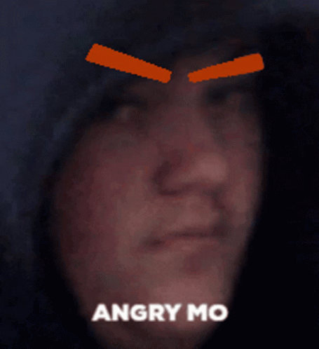 ഉള്ളടക്കത്തിന്റെ വിവരണം: a man in a hoodie with orange eyes and the words angry mo written below him