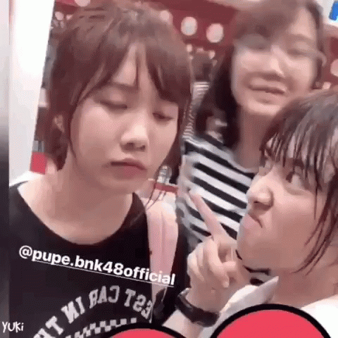 ഉള്ളടക്കത്തിന്റെ വിവരണം: a group of young women are standing next to each other and one of them is pointing at the camera .