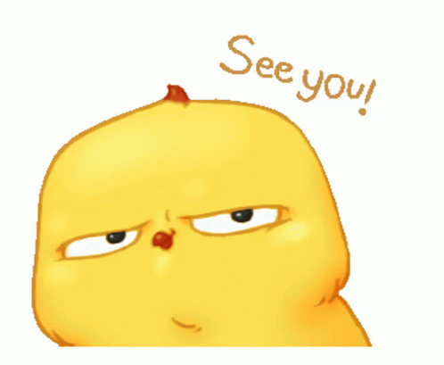 ഉള്ളടക്കത്തിന്റെ വിവരണം: a cartoon chicken says " see you " with a surprised look on his face