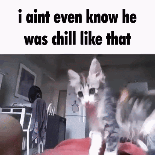 ഉള്ളടക്കത്തിന്റെ വിവരണം: a kitten is sitting on a person 's lap with the caption i ain t even know he was chill like that