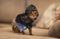 ഉള്ളടക്കത്തിന്റെ വിവരണം: a cat wearing a blue cape and a blue shirt